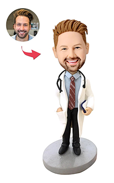 Female Doctor in Lab Coat with Stethoscope Custom Bobblehead -