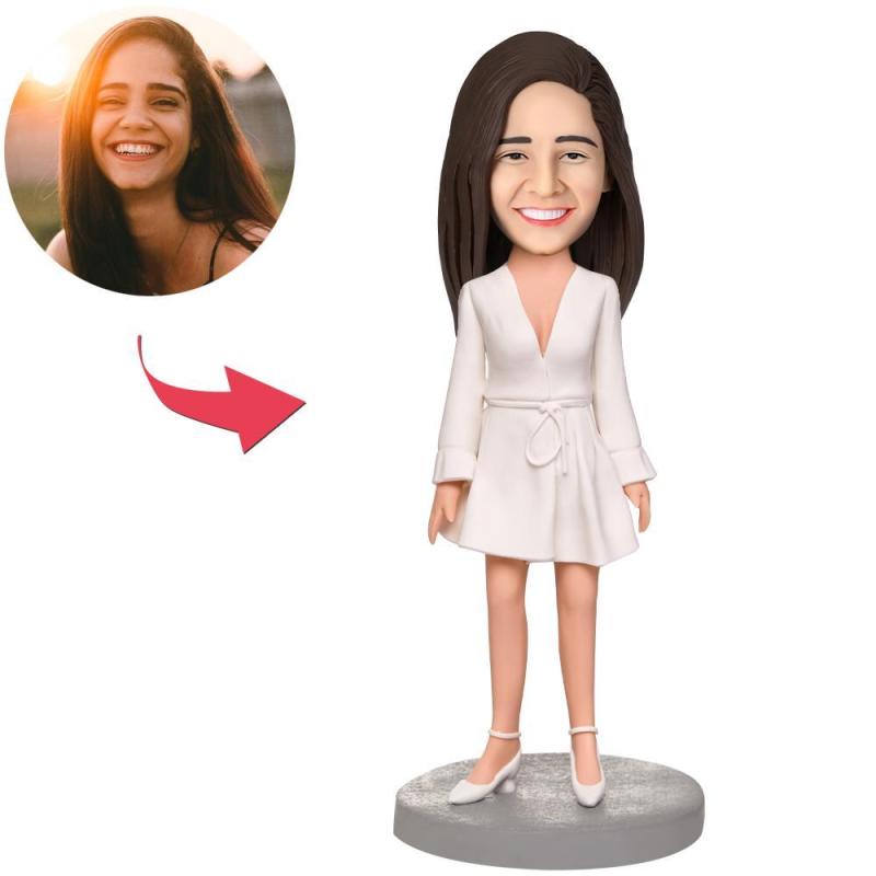 Beautiful Girl Wear White Dress Custom Bobbleheads With Engraved Text