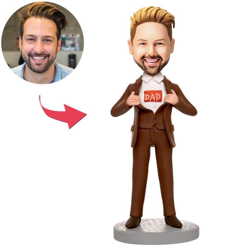 Business Brown Suit Super Dad Superhero Custom Bobbleheads With Engraved Text