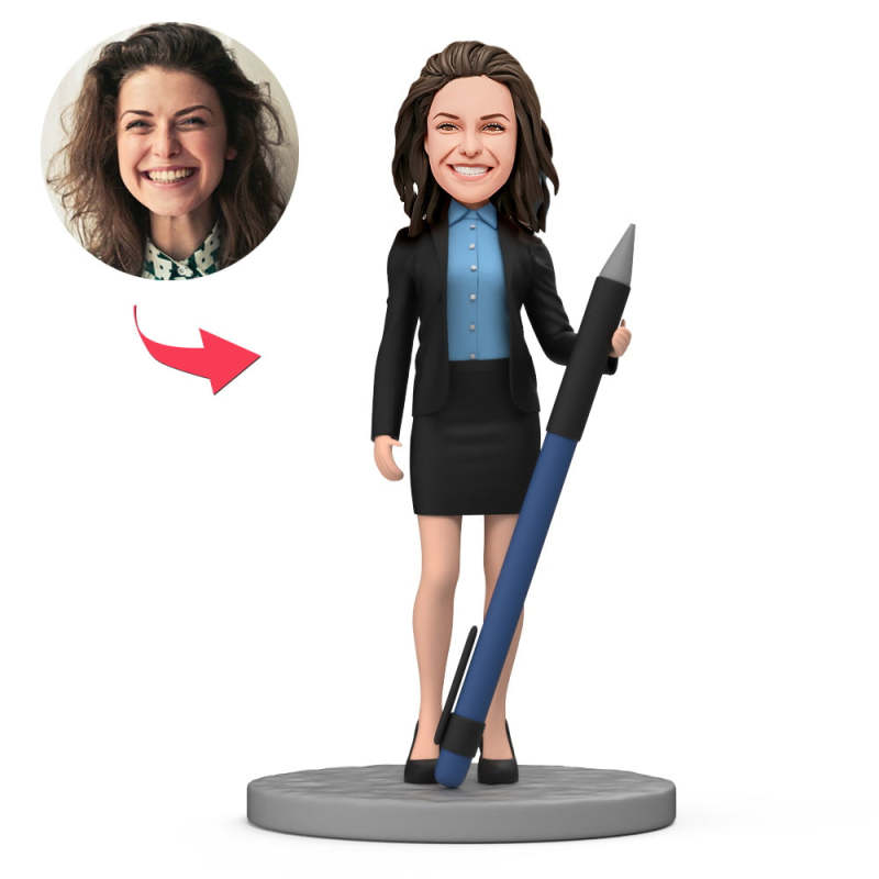 Business Female Hold Pencil Custom Bobblehead with Engraved Text