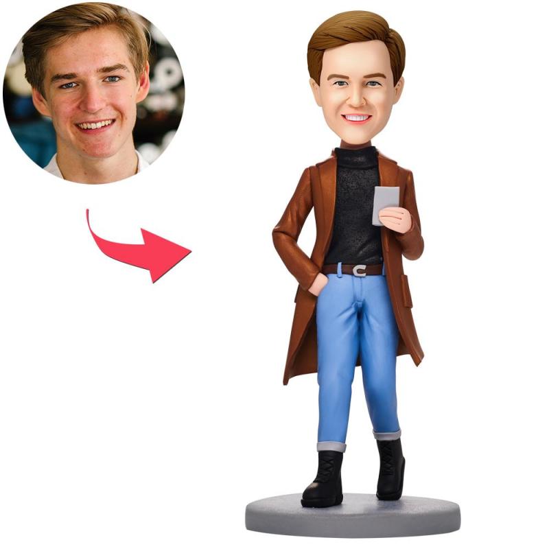 Caasual Fashion Man With Phone Custom Bobbleheads With Engraved Text