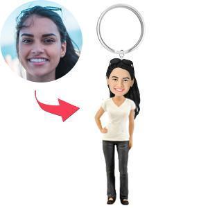 Casual Female Custom Bobblehead Key Chain