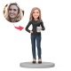 Custom Black Suit Female Boss Holding No1 Cup Custom Bobblehead with Engraved Text Gift for Boss's Day