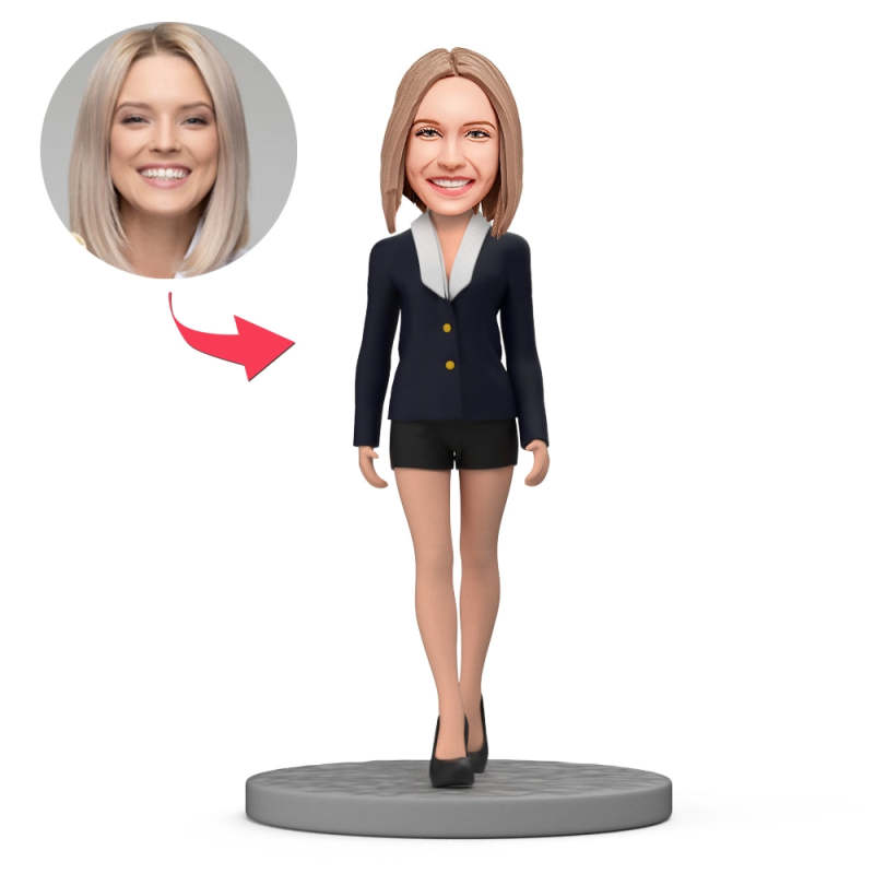 Custom Bobblehead Beautiful Woman Wearing Fashionable White Suit