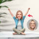Custom Bobblehead Delighted Girl Sitting Cross-legged with Hands Raised