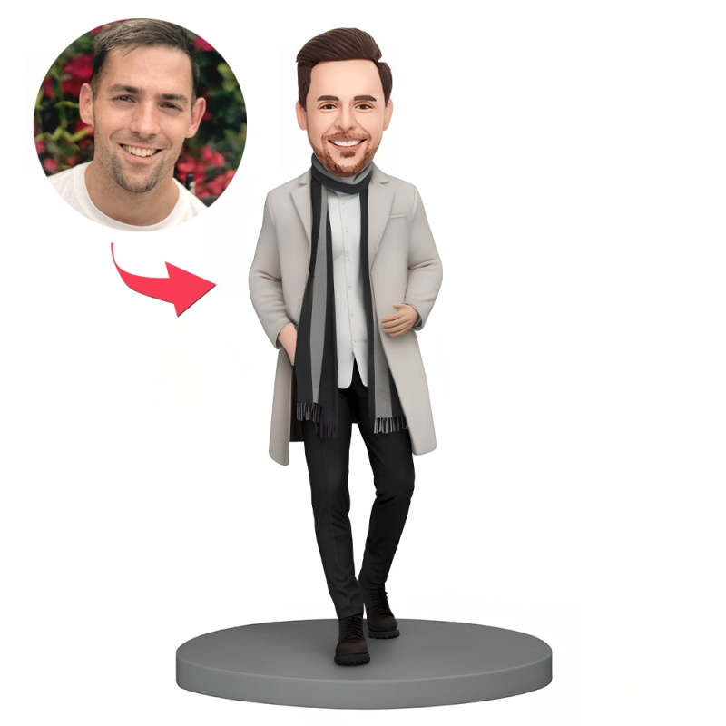 Custom Bobblehead Stylish Man in White Coat and Scarf