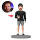 Custom Bobbleheads Man in Black Shirt and Gray Pants with Engraved Text for Dad