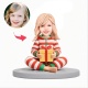 Custom Child in Striped Pajama Set Sitting While Holding Gift Box Custom Bobblehead With Engraved Text Gift