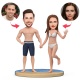 Custom Couple on the Beach Wearing Bikini Custom Bobblehead With Engraved Text Gift for Valentine's Day