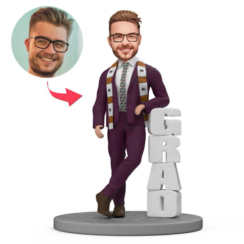 Custom Graduation Bobbleheads Male Graduate Stand with GRAD