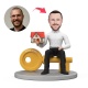 Custom Male in White Shirt Sitting on Key Holding Mini House Custom Bobblehead With Engraved Text Gift