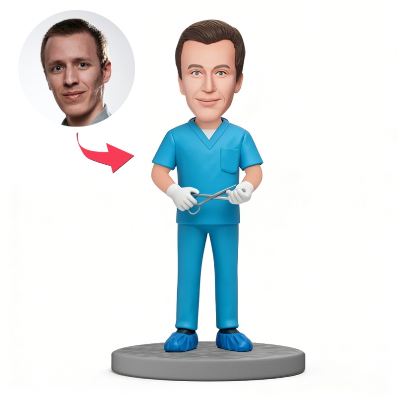 Custom Male Nurse Holding Surgical Scissors Custom Bobblehead With Engraved Text Gift