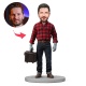 Custom Male Worker in Red Plaid Shirt and Carrying a Toolbox Custom Bobblehead With Engraved Text Gift