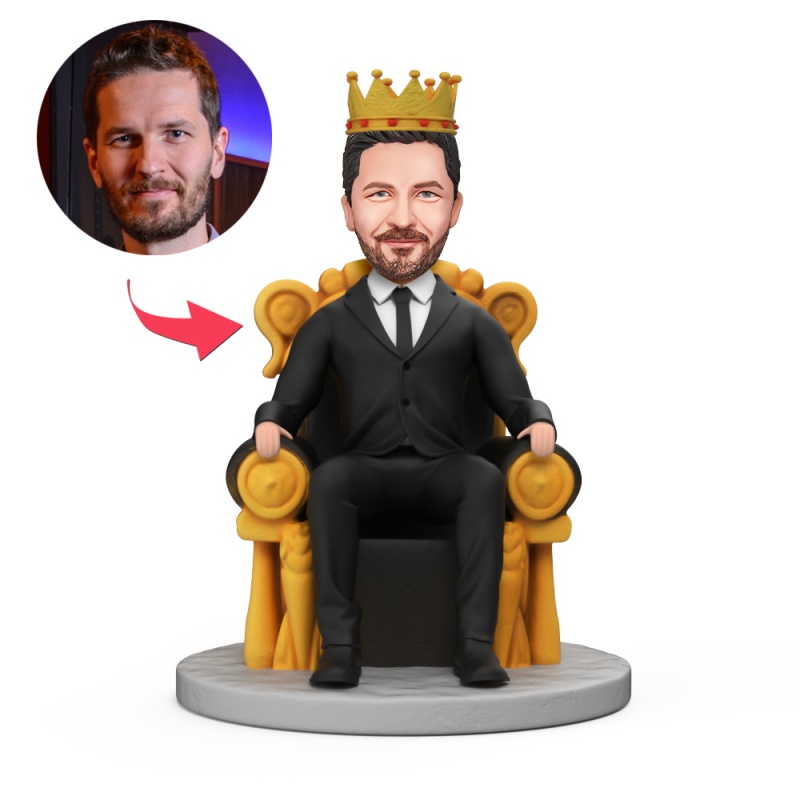 Custom Man Wearing Suit and Crown Sitting on Throne Bobblehead With Engraved Text Gift
