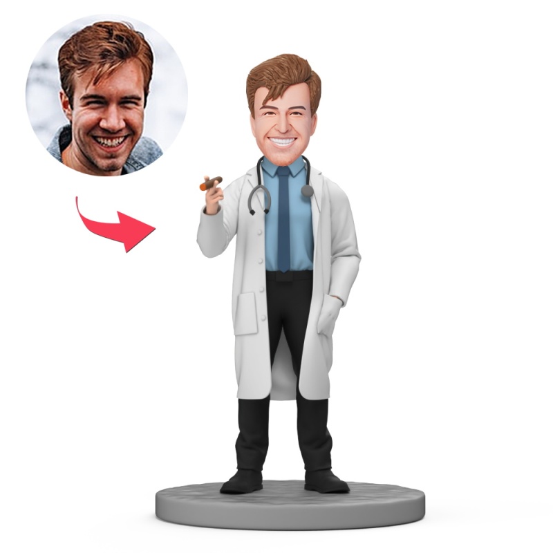 Doctor Hold Cigar Custom Bobblehead with Engraved Text
