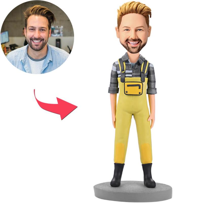 Fashion Man In Yellow Bib Pants Custom Bobbleheads With Engraved Text
