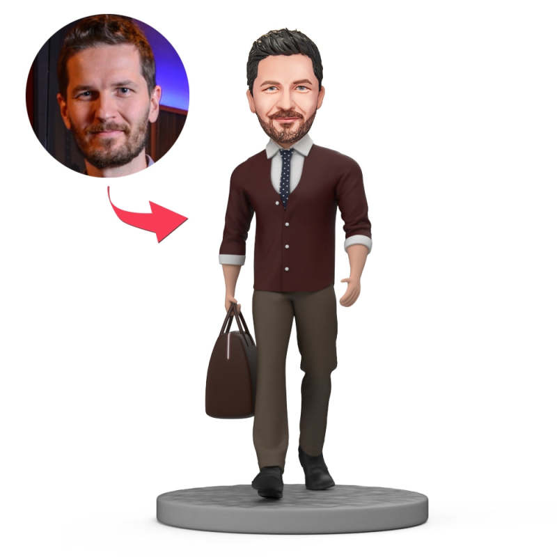 Fashionable Man Custom Bobblehead Holding Bag