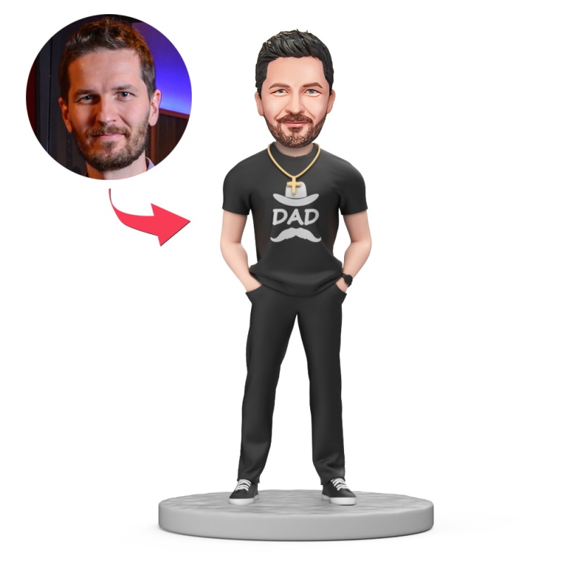 Father's Day Gift DAD Wear Black Cloth Custom Bobblehead with Engraved Text