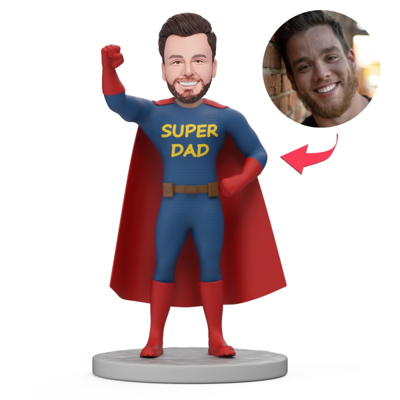 Father's Day Gifts Superman with Red Cape Custom Bobblehead with Engraved Text