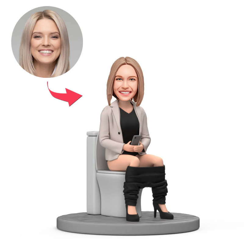 Female Boss Sit on the Toilet Custom Bobblehead with Engraved Text
