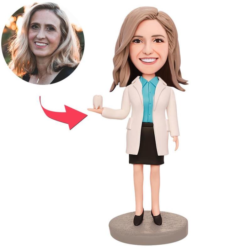 Female Dentist Custom Bobblehead With Engraved Text