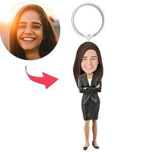 Female Executive B Custom Bobblehead Key Chain