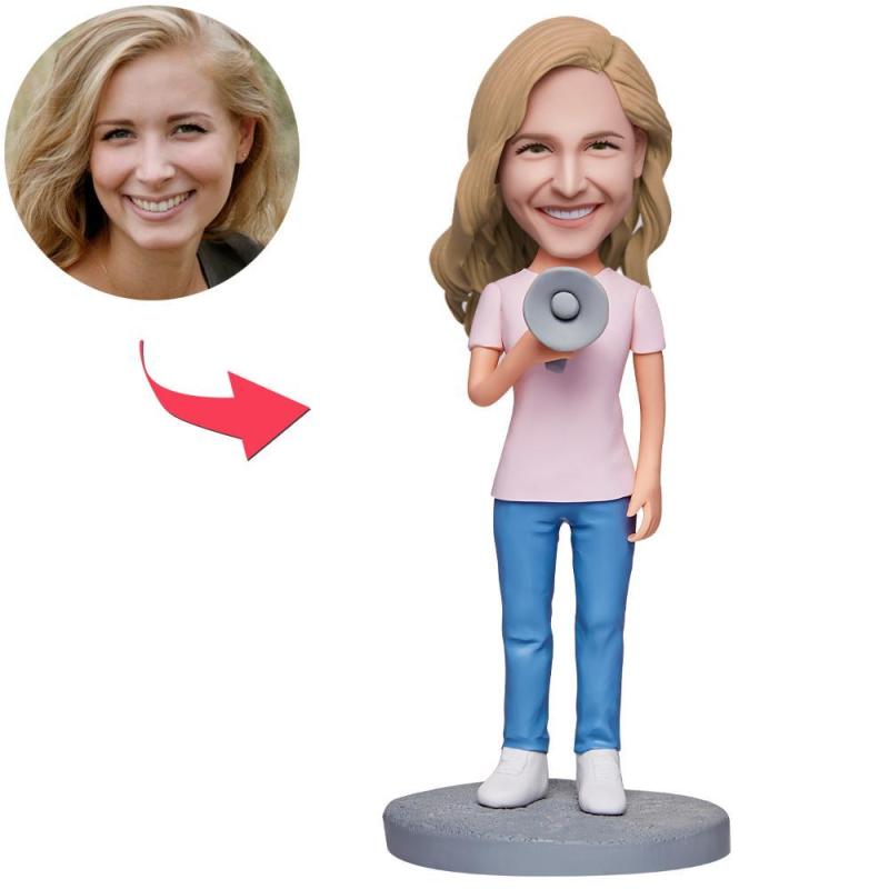 Female Holding A Megaphone Custom Bobbleheads With Engraved Text