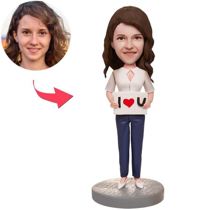 Female I LOVE U Custom Bobblehead With Engraved Text