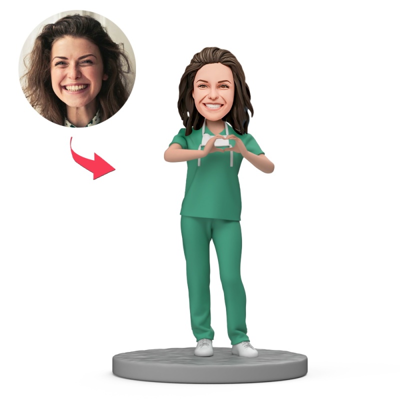 Female Nurse Compares Her Feelings Custom Bobblehead with Engraved Text