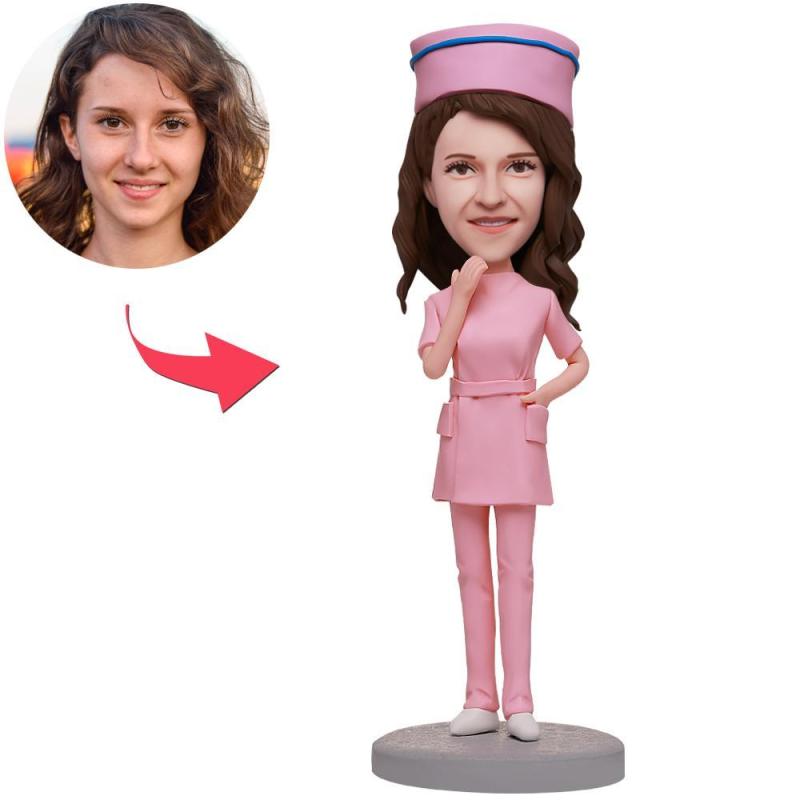 Female Nurse In Pink Nurse Uniform Custom Bobbleheads With Engraved Text