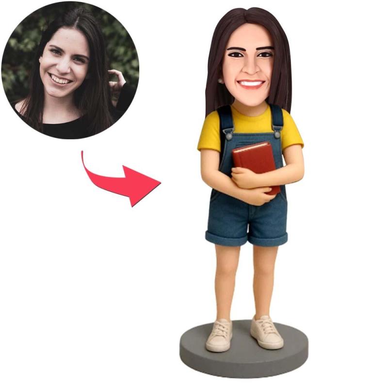 Female Student Carry Backpack Custom Bobblehead with Engraved Text