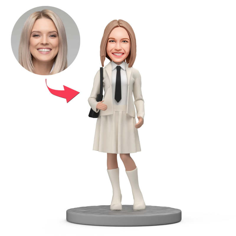 Home / Female Student Wear White Suit Custom Bobblehead with Engraved Text