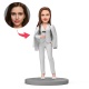 Female Wear White Suit and Hold Coffee Custom Bobblehead with Engraved Text