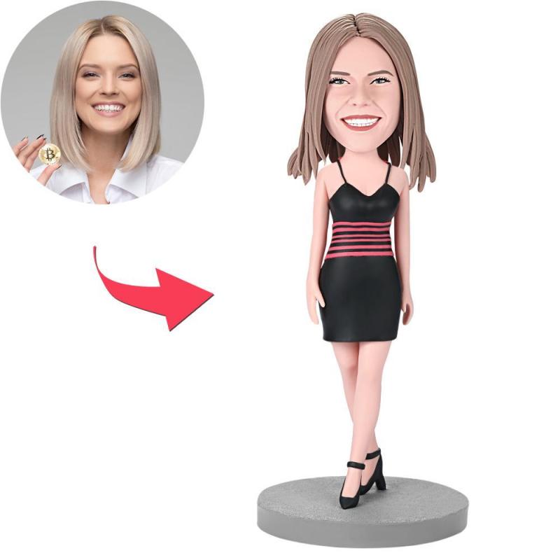 Female Wearing A Black Dress Custom Bobbleheads With Engraved Text