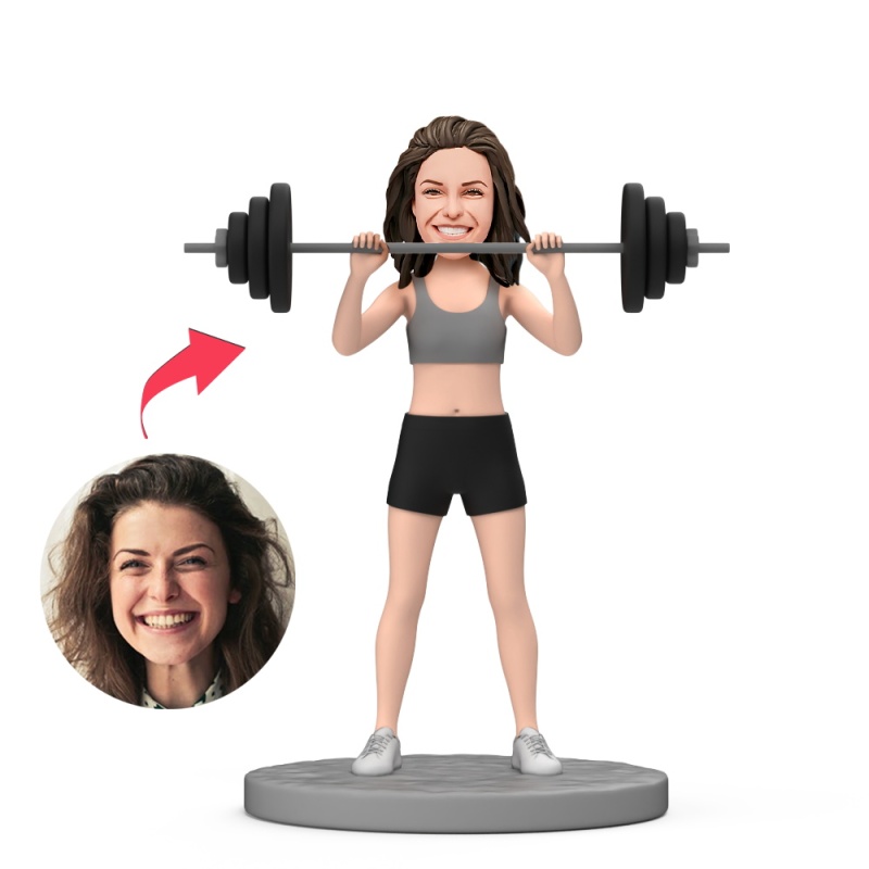 Female Weightlifter Custom Bobblehead With Engraved Text