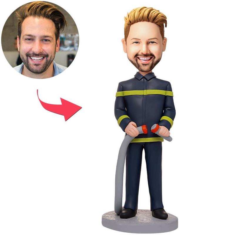 Fireman holding A Hose Custom Bobbleheads With Engraved Text