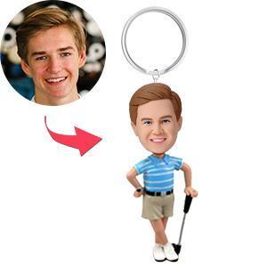 Golfer Posing With His Club Custom Bobblehead Key Chain