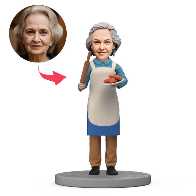 Grandma Cook in Apron Custom Bobblehead with Engraved Text