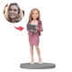Lady Wear Pink Suit and Hold Computer Custom Bobblehead with Engraved Text