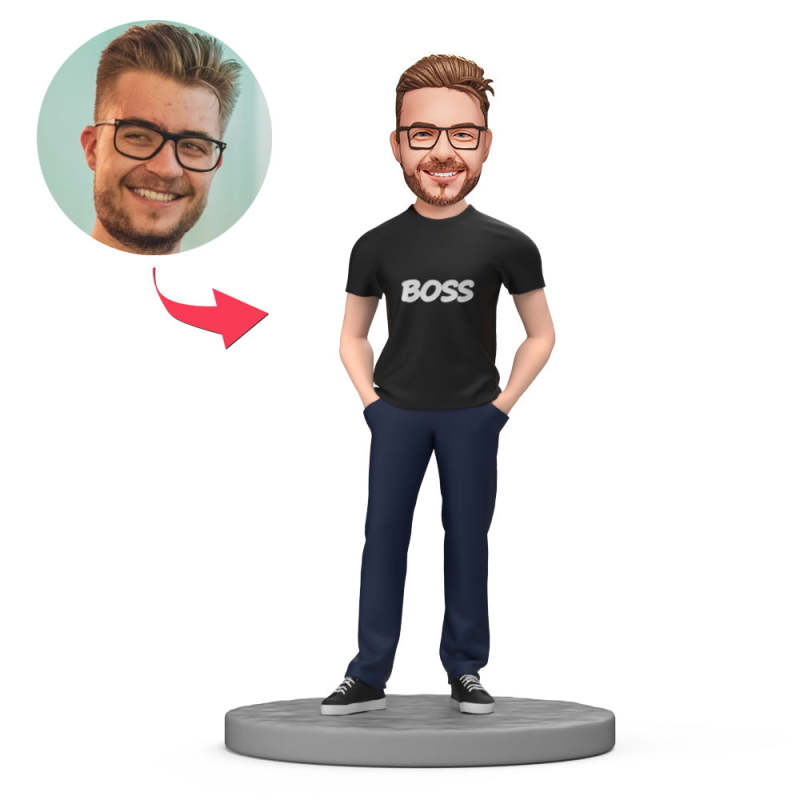 Male Boss Wear Casual Custom Bobblehead with Engraved Text