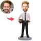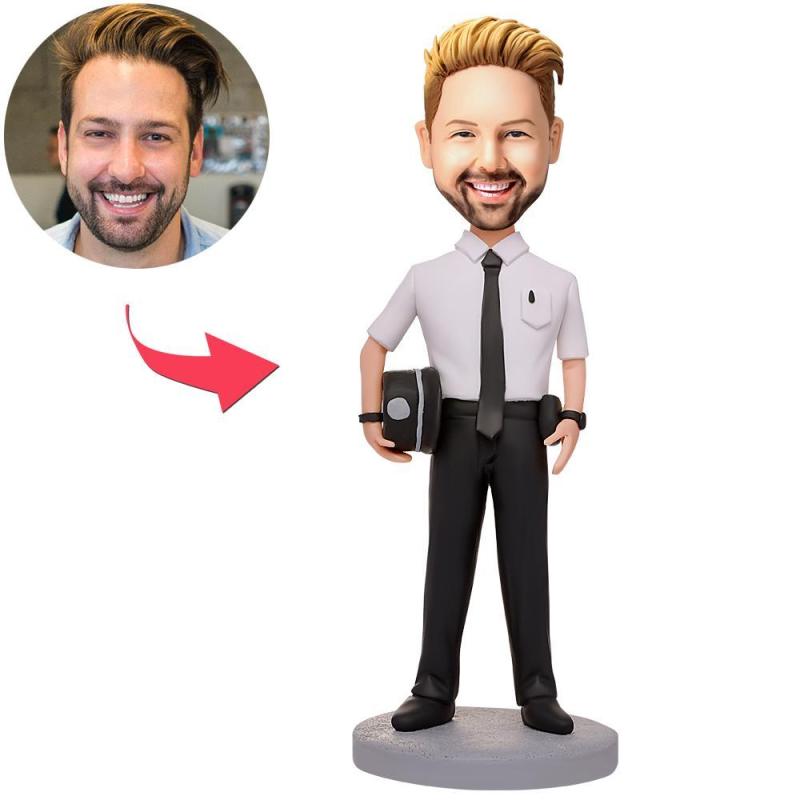 Male Policeman Holding A Police Hat Custom Bobbleheads With Engraved Text