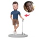 Man Play Golf Wear Blue Polo Shirt Custom Bobblehead with Engraved Text
