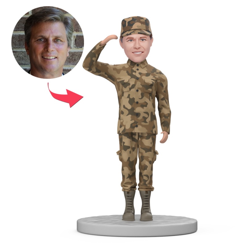 Military Man Salute Custom Bobblehead with Engraved Text