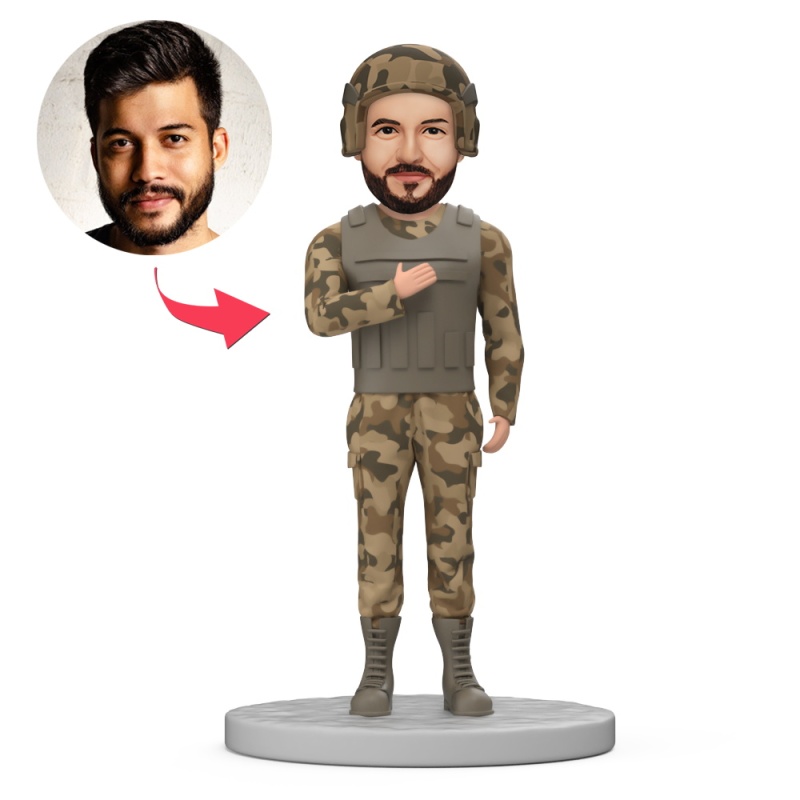 Military Man with Helmet Custom Bobblehead with Engraved Text