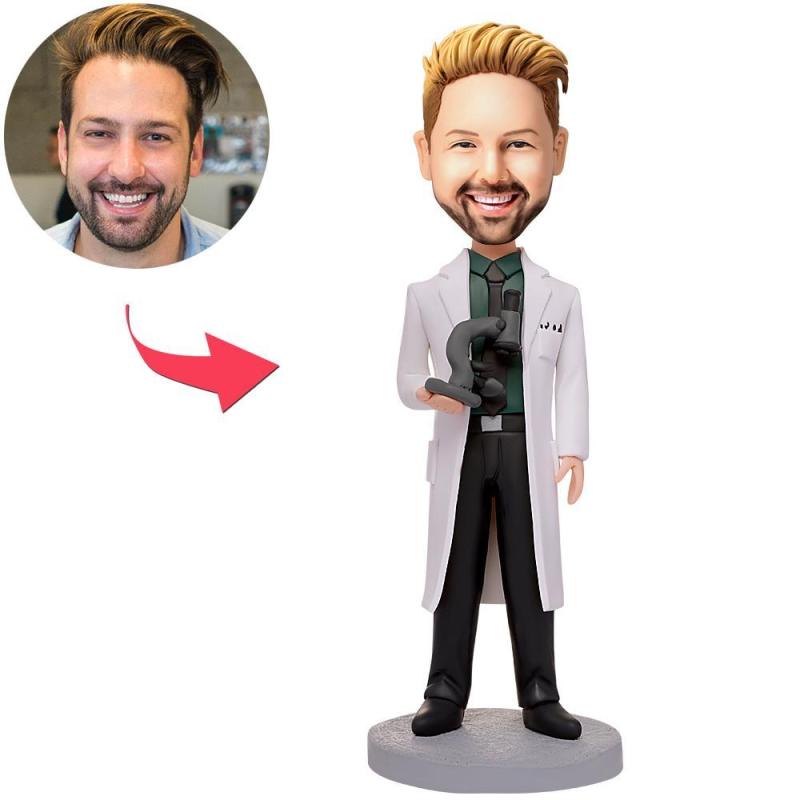 Scientist Holding A Microscope Custom Bobbleheads With Engraved Text