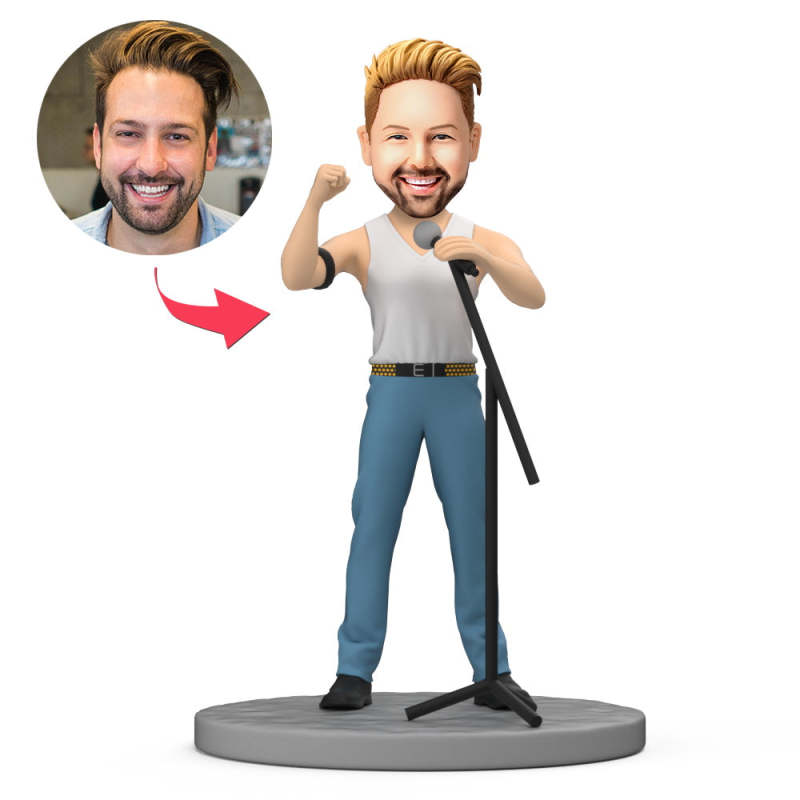 Singer Wear a White Tank Top and Jeans Custom Bobblehead with Engraved Text