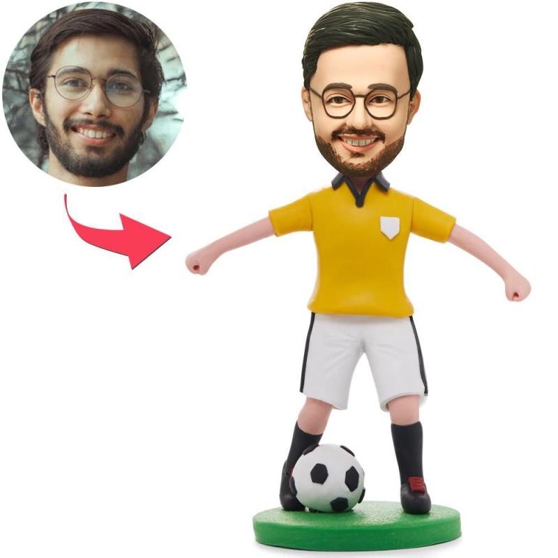 Soccer/football Player Dribbling In Yellow Shirt Custom Bobbleheads With Engraved Text