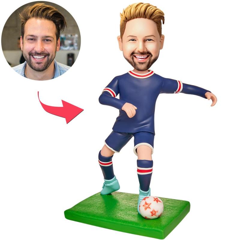 Soccer Player Blue Uniform Custom Bobblehead Engraved with Text
