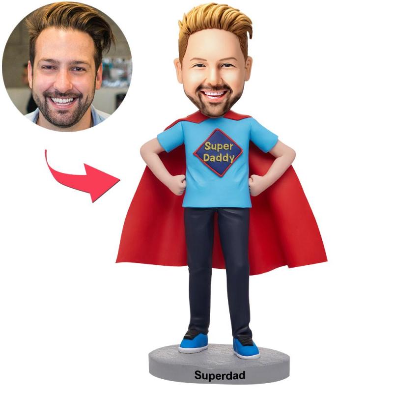 Super Daddy Superhero Super Father Custom Bobbleheads With Engraved Text