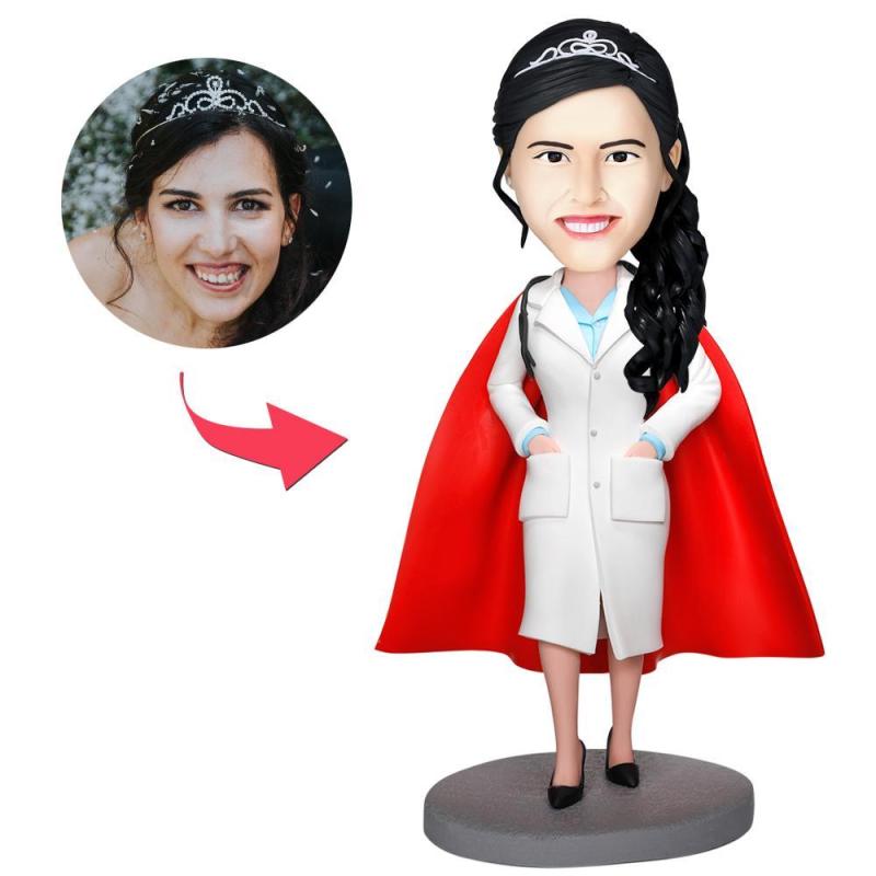Super Female Doctor With White Coat Custom Bobbleheads With Engraved Text